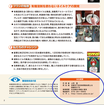 「知恵ビジネスプランコンテスト10年の歩み」の冊子を更新(第11回認定企業追加)するにあたり、以下の「10年の歩み」(PDF)の貴社プランページに記載されています「会社概要」の欄に変更事項がないかご確認お願いいたします。