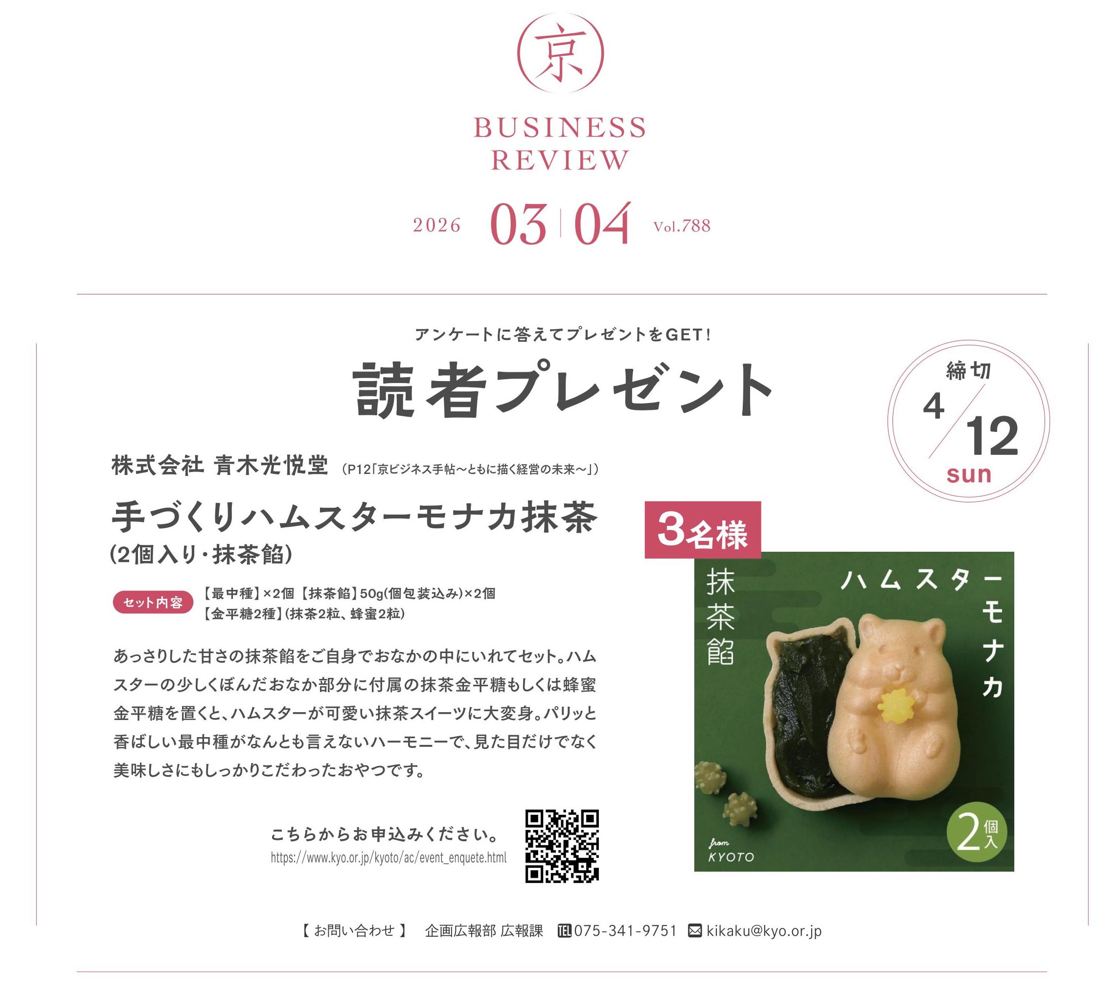 会報誌「京BUSINESS REVIEW 1・2月号」アンケートに答えてプレゼントをGET!